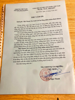 Với truyền thống đoàn kết, tương thân, tương ái của dân tộc và tinh thần “Chống dịch như chống giặc”, thời gian qua, nhiều tổ chức, cá nhân đã tự nguyện ủng hộ về tài chính, cũng như vật chất cho phường Bách Khoa trong công tác phòng chống dịch. Những việc làm thiết thực trên không chỉ thể hiện trách nhiệm của từng cá nhân, tổ chức trong công tác phòng, chống dịch bệnh, mà còn lan tỏa tỉnh thần đoàn kết “Tương thân, tương ái trong cộng đồng chúng ta. UBMTTQ phường Bách Khoa rất cảm ơn tấm lòng, nghĩa cử cao đẹp của: Hội Thánh Tin Lành Lời Sự Sống (điểm nhóm Bách Khoa) Đã ủng hộ 70 xuất quà hỗ trợ cho các gia đình gặp hoàn cảnh khó khăn do